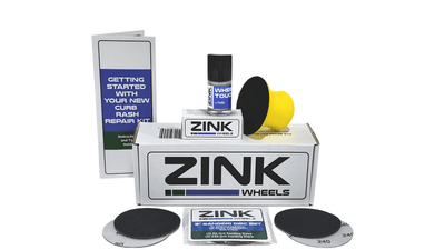 Zink Wheels Curb Rash Repair Kits include everything you need for curb rash repair, such as a sanding block, sanding discs, wheel touch-up paint, and step-by-step instructions. You can check out the Curb Rash Repair Kits available for Tesla Model 3, Model Y, Model S, and Model X vehicles here: