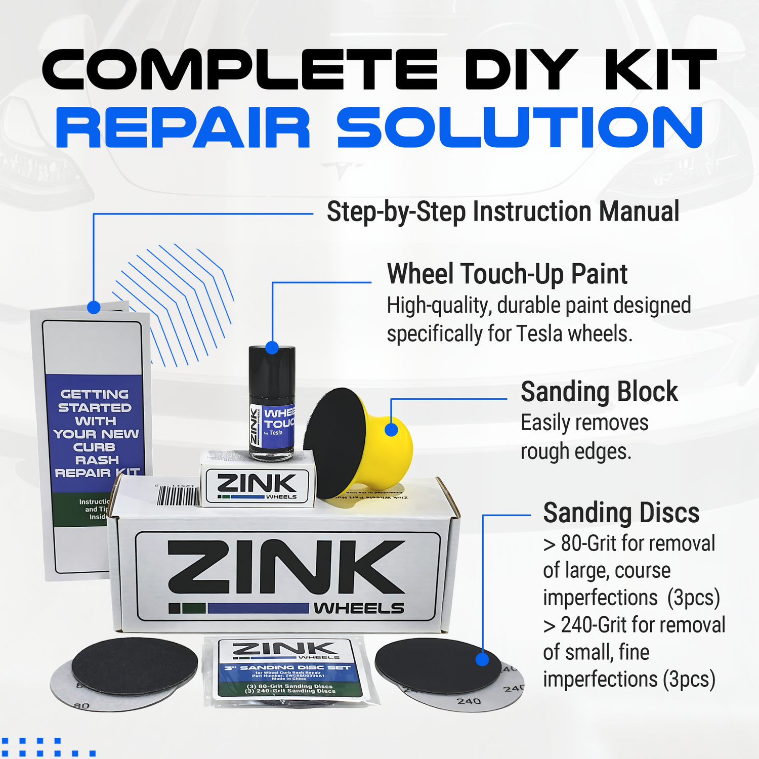 Use a Curb Rash Repair Kit to repair your Tesla wheel curb rash quickly and easily... without hiring a professional or spending hundreds of dollars